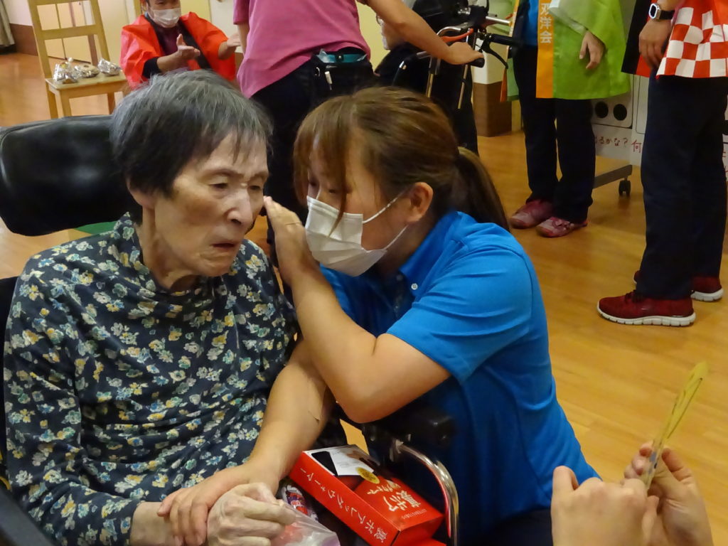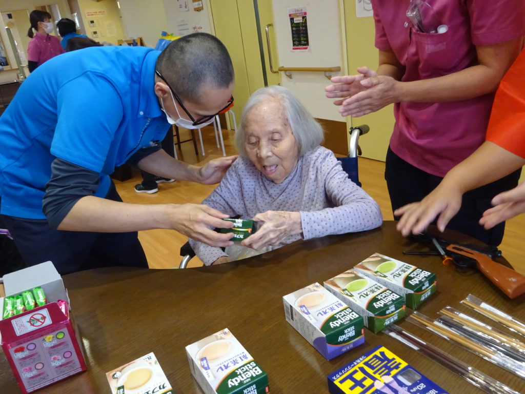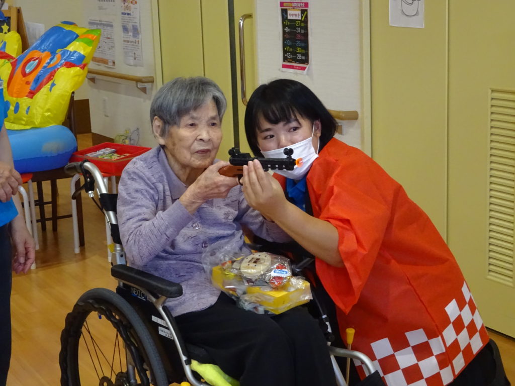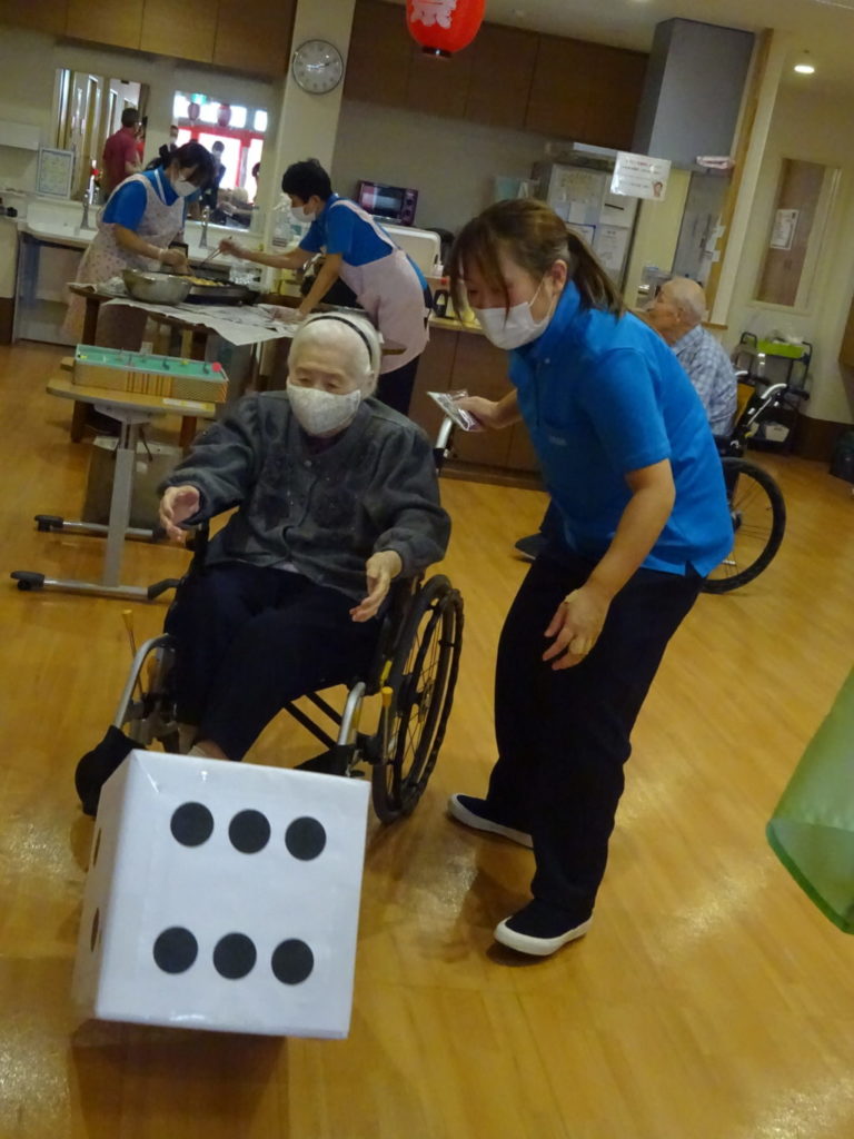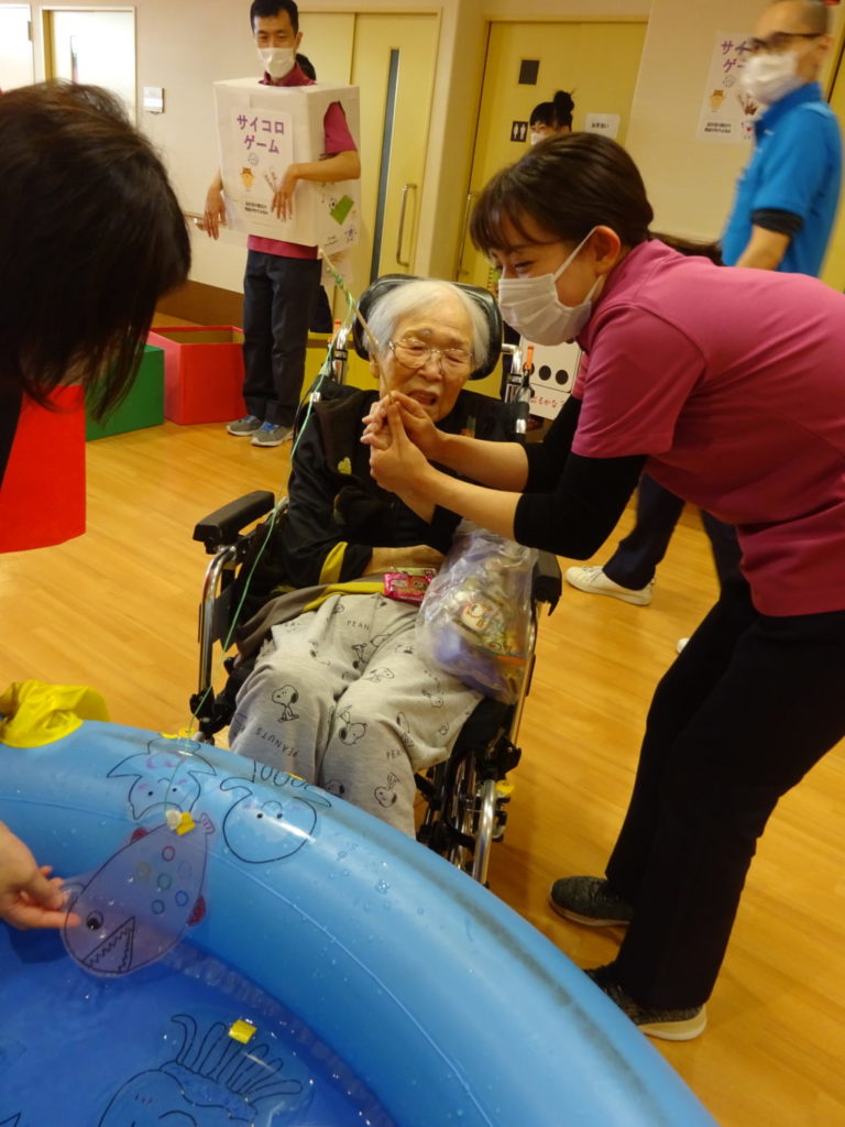 4階秋祭り 2025 7/01 特別養護老人ホーム 2021年10月18日2025年7月1日 まだまだリスクの高い特養では各階別々の秋祭りです。 緊急事態宣言が解除されましたが T様、大きなサイコロを選んで元気よく投げてくださいました。 H様、普段あまりイベントには参加されませんが、今日はとびきりの笑顔を見せてくださいました。 Y様、参加賞の景品はカフェオレを選んでくださいました。 K様、何やら職員と相談中です。 M様、ボール入れでお菓子が当たりました。 G様、大きなサイコロを頑張って投げてくださいました。 A様、吸盤の射的で一生懸命狙っています。 Y様、職員の応援に頷いてくださってます。 G様、魚釣りゲームで大物が釣れました。 S様、ゲームの最後におやつの「たこ焼き」を受け取って終了です。 協賛(順不同) 日化産業株式会社 株式会社フードケア ピジョンタヒラ株式会社 株式会社ウィズ 日本製紙クレシア株式会社 特別養護老人ホーム よかったらシェアしてね! URLをコピーしました! URLをコピーしました! ケーキバイキング 叩いて被って・・・ この記事を書いた人 blog 関連記事 串カツ 2026年1月22日 祝!米寿!! 2026年1月12日 バルンアーチ 2025年10月23日 内部研修 2025年10月13日 かき氷 2025年8月15日 カレーライスの日 2025年7月21日 ドクター回診 2025年5月31日 いちご狩り 2025年5月26日