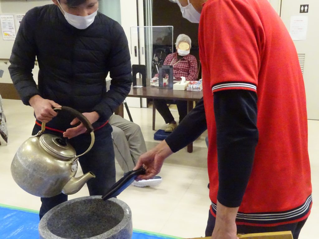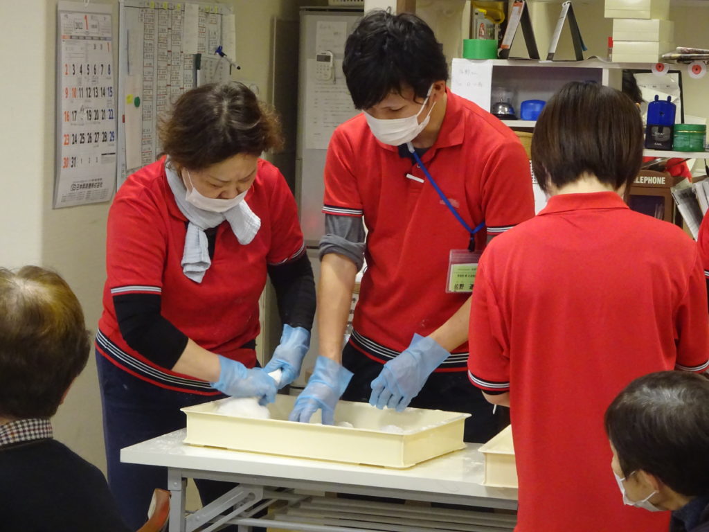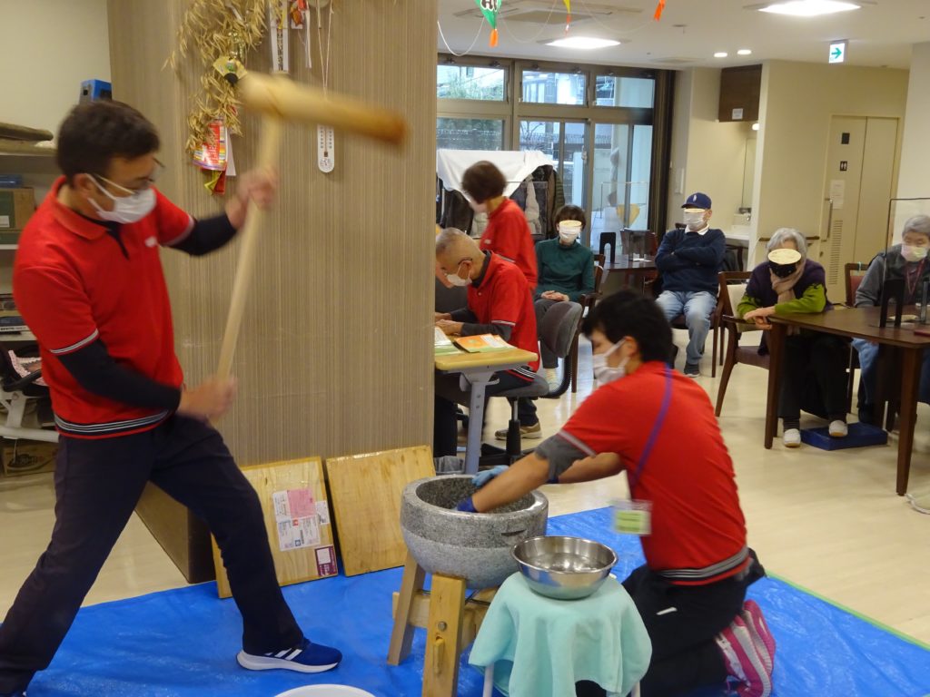 お餅つき 2025 6/18 デイサービス 2022年1月11日2025年6月18日 今日のデイサービスはお餅つきでした。 財布を小ネタに挟みながら。。。 本格的なお餅つきが始まります。 まずはスタッフがつきはじめ 続いて利用者様にもついていただきました。 転倒しないように横で支えます。 みんな総出でお餅をこねました。おぜんざいの出来上がりです。 のど詰めを予防する為、小さな小さなお餅を沢山入れさせていただきました。 今回も美味しく楽しくいただきました。 デイサービス よかったらシェアしてね! URLをコピーしました! URLをコピーしました! 叩いて被って・・・ たい焼きレク この記事を書いた人 blog 関連記事 太鼓!! 2025年9月17日 流しおもちゃ大会 2025年7月22日 ボッチャ!! 2025年6月17日 チェロス 2025年2月18日 準グランプリ受賞!! 2024年12月16日 スイカ割り 2024年8月18日 ぐらぐらタワー 2023年10月23日 デイサービス夏祭り 2023年8月17日