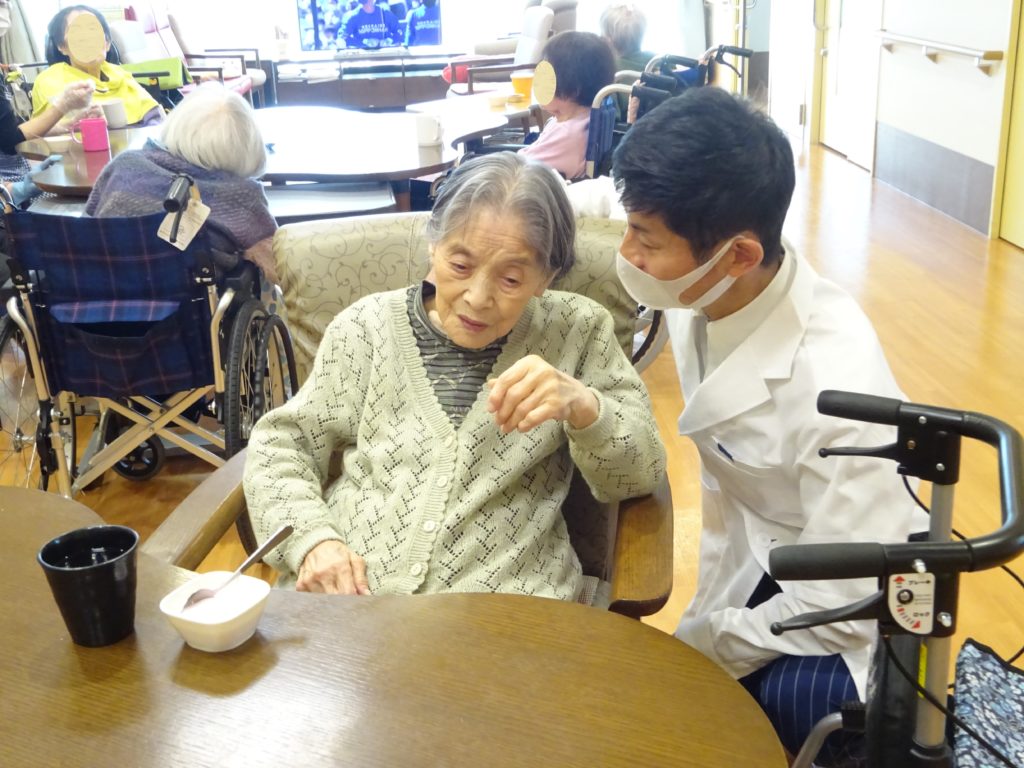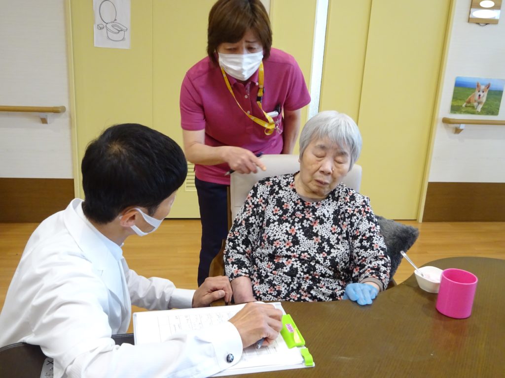 ドクター回診 2025 7/09 特別養護老人ホーム 2022年4月30日2025年7月9日 クリニックの診察が終わった後、ドクター回診がありました。 一人一人の体調を伺いながら丁寧に診てもらいます。 ドクター回診の時は皆、嬉しそうです。 傾眠中の利用者様にはスタッフや看護師が代わりに説明します。 特別養護老人ホーム よかったらシェアしてね! URLをコピーしました! URLをコピーしました! 誕生日プレゼント クレープ作り この記事を書いた人 blog 関連記事 串カツ 2026年1月22日 祝!米寿!! 2026年1月12日 バルンアーチ 2025年10月23日 内部研修 2025年10月13日 かき氷 2025年8月15日 カレーライスの日 2025年7月21日 ドクター回診 2025年5月31日 いちご狩り 2025年5月26日