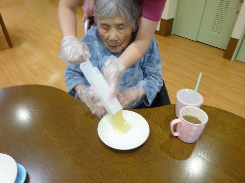 ところてん 2025 5/28 特別養護老人ホーム 2023年6月23日2025年5月28日 今日はところてんを突いて食べました。 「昔、こんなん食べたわ~」と言いながら お好きな出汁をかけて食べていただきました。 特別養護老人ホーム よかったらシェアしてね! URLをコピーしました! URLをコピーしました! ご対面 つる丸亭一座 この記事を書いた人 blog 関連記事 串カツ 2026年1月22日 祝!米寿!! 2026年1月12日 バルンアーチ 2025年10月23日 内部研修 2025年10月13日 かき氷 2025年8月15日 カレーライスの日 2025年7月21日 ドクター回診 2025年5月31日 いちご狩り 2025年5月26日