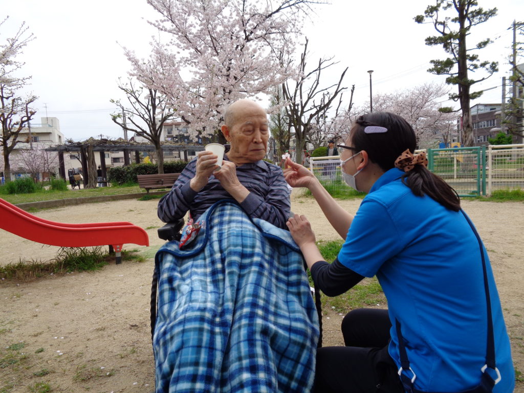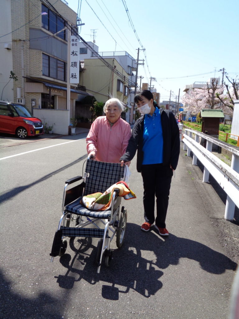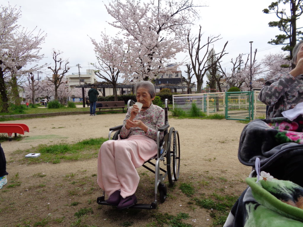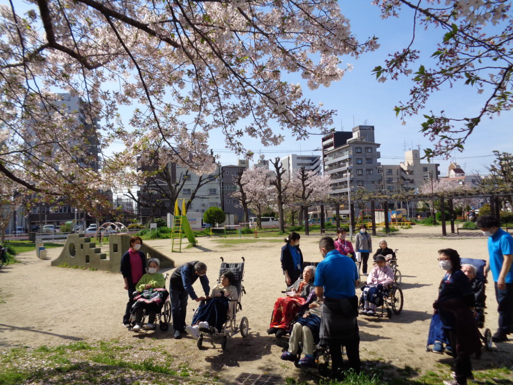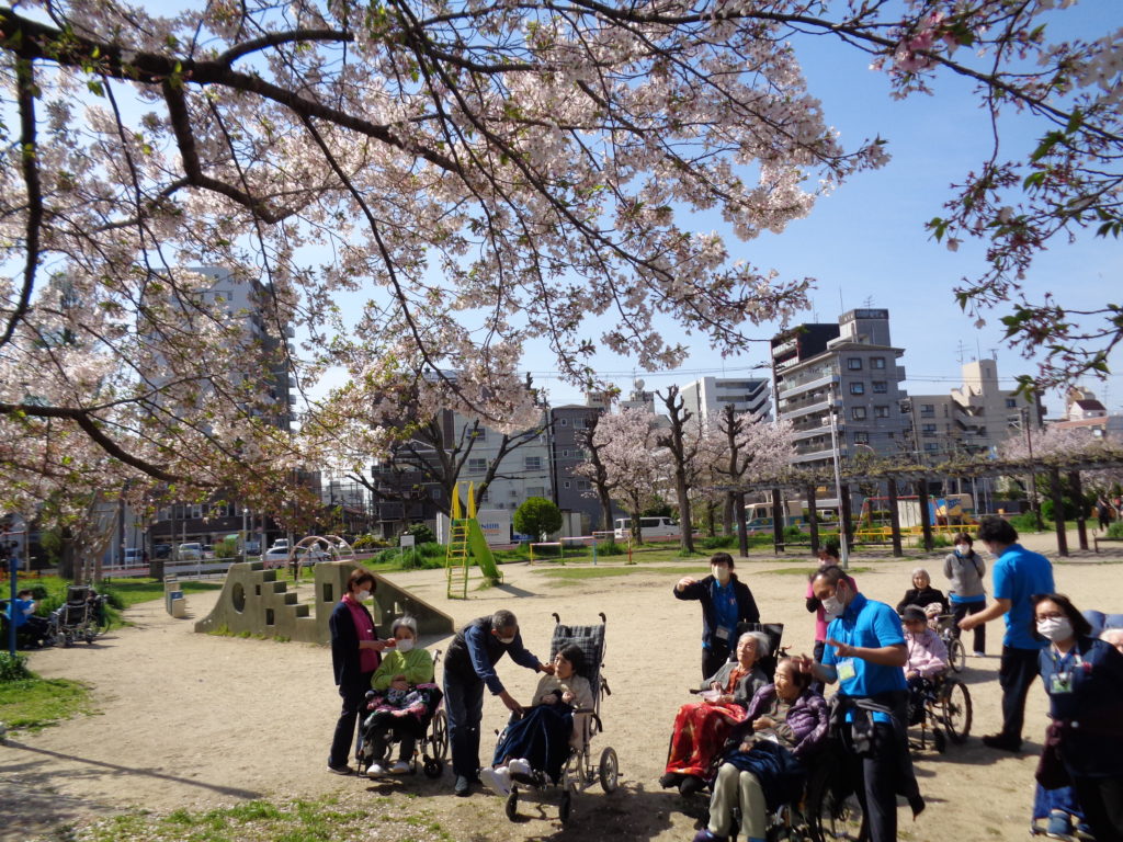 3月31日から、お天気の良い日は入所者様には順番にお花見を楽しんでいただきました。