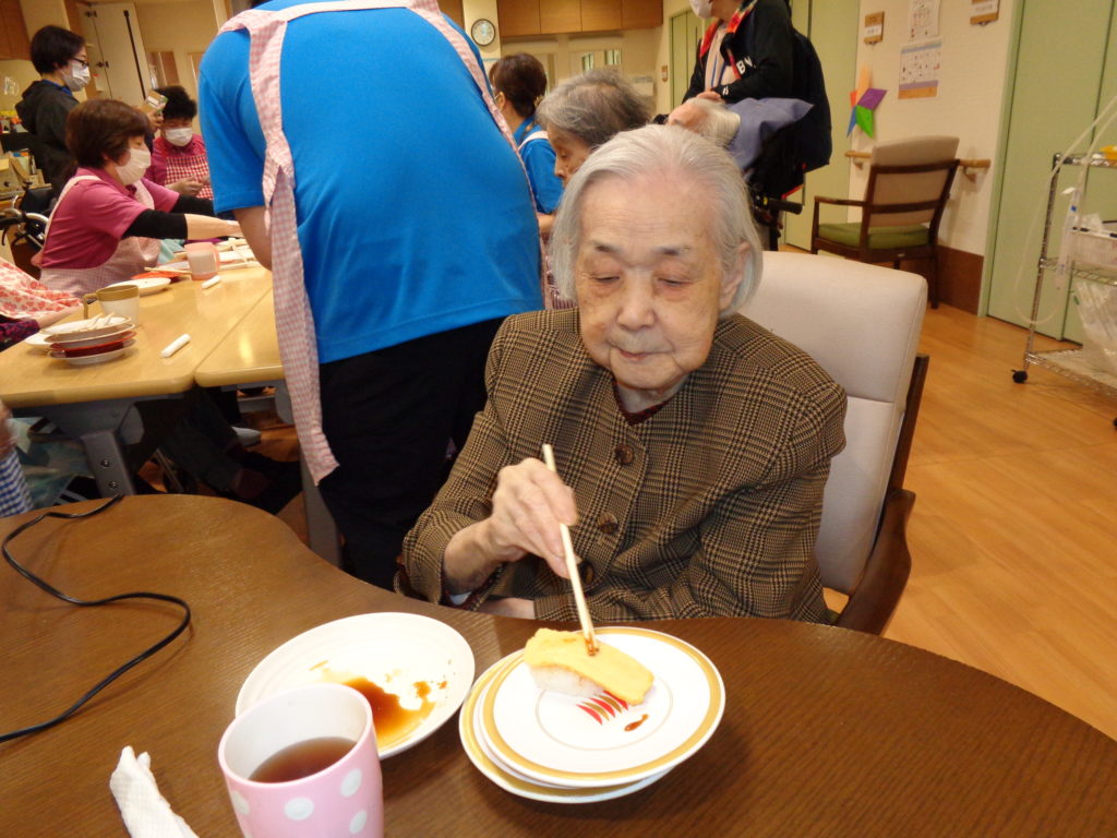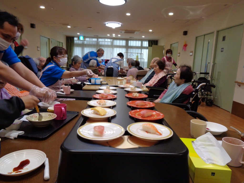 回転ずし 2025 6/26 特別養護老人ホーム 2024年5月8日2025年6月26日 前回4階フロアで大好評だった回転ずしを今回は2階のフロアで行ないました。 お寿司は皆さん大好きなようでいつもより沢山食べてくださいました。 これからも色んな企画をどんどんやっていきたいと思います。 特別養護老人ホーム よかったらシェアしてね! URLをコピーしました! URLをコピーしました! お花見 備蓄用パン この記事を書いた人 blog 関連記事 串カツ 2026年1月22日 祝!米寿!! 2026年1月12日 バルンアーチ 2025年10月23日 内部研修 2025年10月13日 かき氷 2025年8月15日 カレーライスの日 2025年7月21日 ドクター回診 2025年5月31日 いちご狩り 2025年5月26日