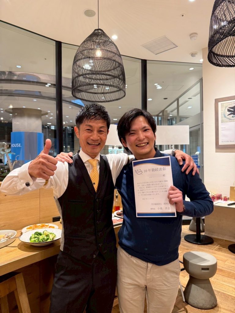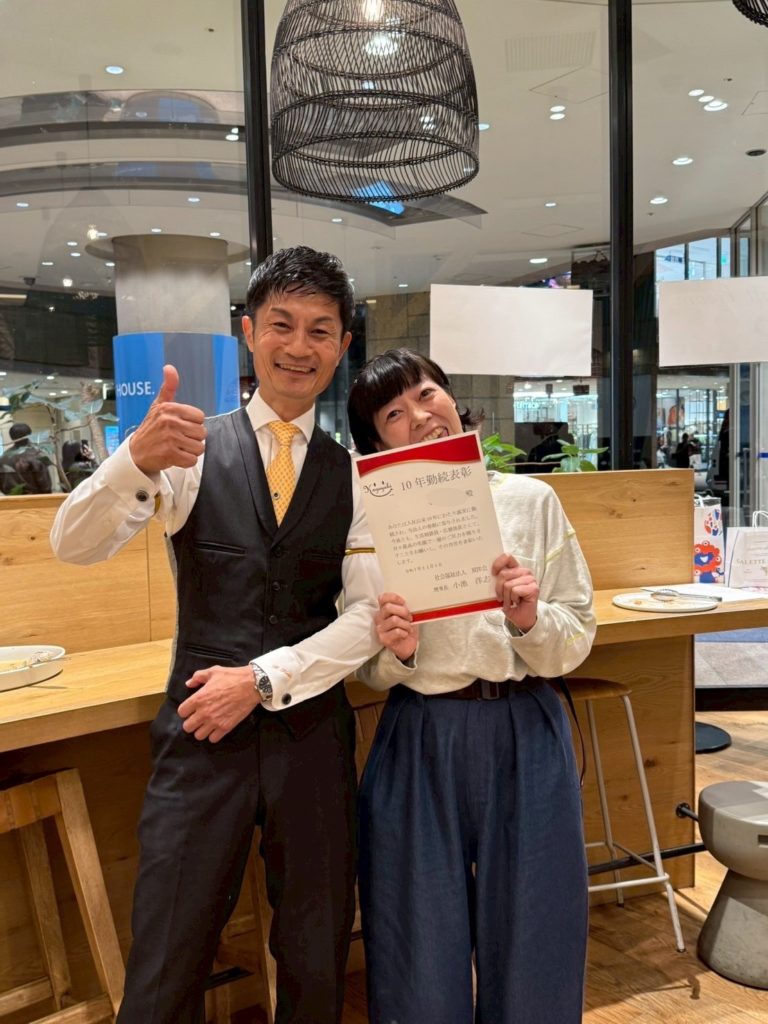 そして、勤続10年のスタッフ5名に表彰状と金一封と特別休暇が付与されました。