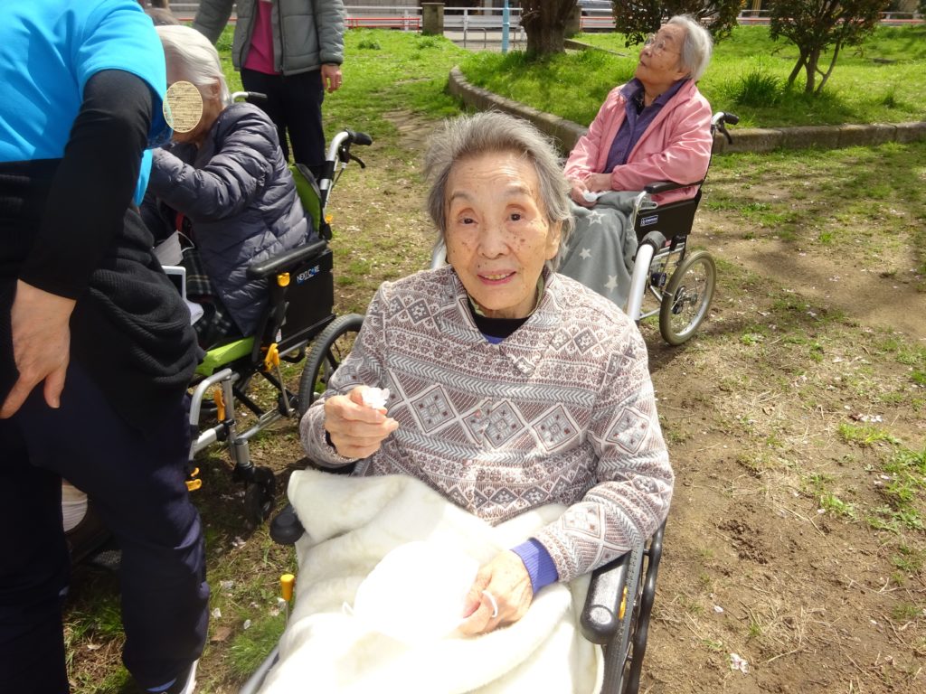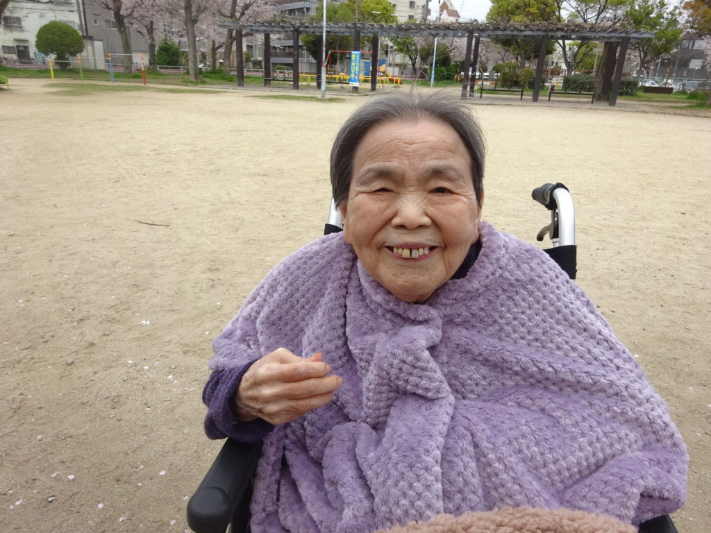 少し曇っていましたが今日もお花見に行ってきました。 息子さんが公園まで来てくださったので、とても喜んでおられました。 久しぶりの外出でとても気持ち良さそうにされていました。 お花見に行くのをためらっておられましたが笑顔が見られて良かったです... -