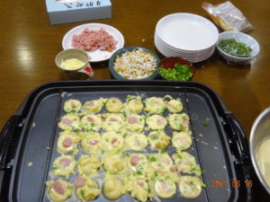 今日のおやつは「たこ焼きパーティー」です。 皆さんペロリと召し上がっておられました。 -