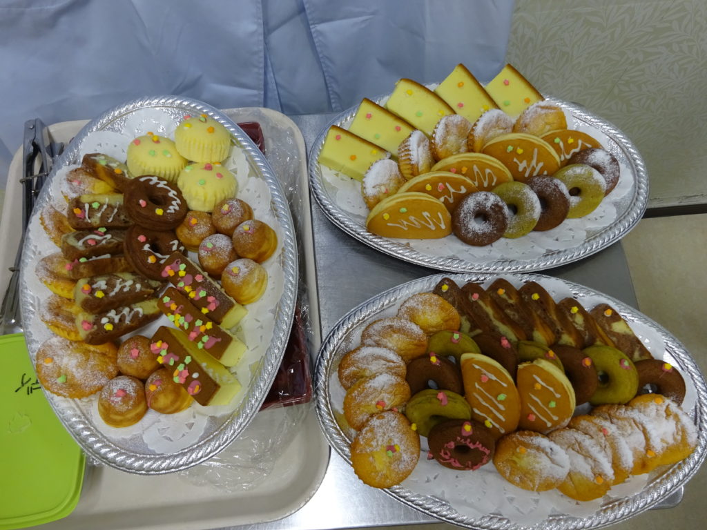 ビンゴゲームで当たった人から順番にお好きなケーキを召し上がっていただきました。 トッピングを飾るだけで、より食欲が沸きそうです。 はずれなしのゲームですが、力が入りました。 -