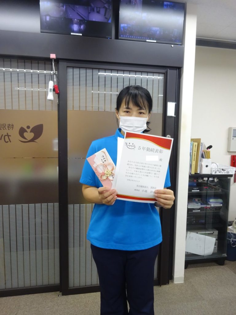 本日の5年勤続表彰はフルタイムパートのWさん。 明るく気さくなWさん、5年間頑張ってくださって感謝です。 表彰された後「ああ泣きそう。。。」と涙を堪えていました。 これからもよろしくお願いします。 -